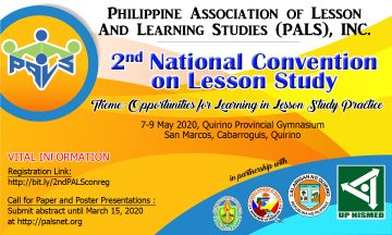 PALS Announcement Published January 21, 2020 at 360 × 216 in PALS Announcement ← Previous Next → 2nd National Convention on Lesson Study